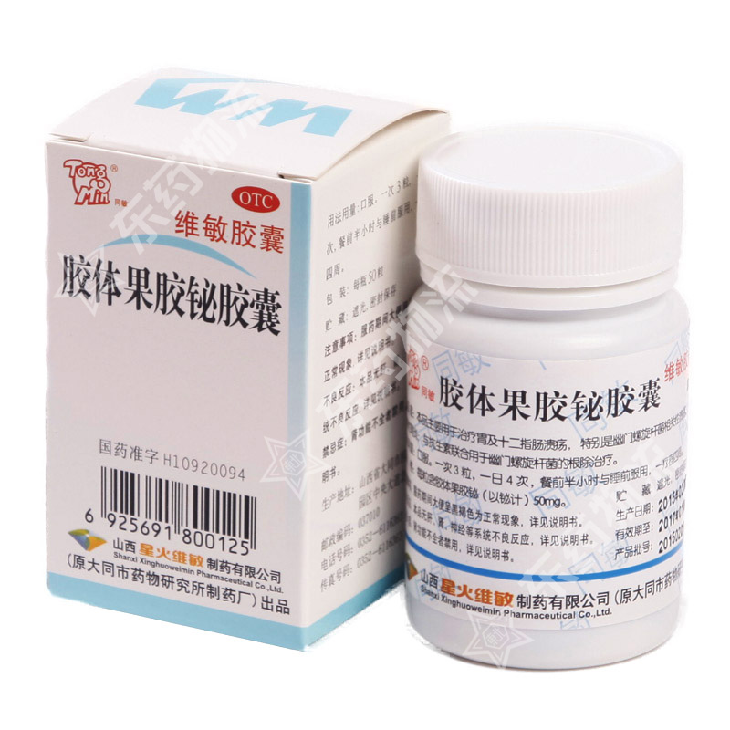 胶体果胶铋胶囊(维敏)商品编码:9998 生产厂家:山西新宝源 |