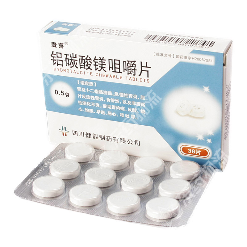 铝碳酸镁咀嚼片商品编码:113727 生产厂家:四川健能 |