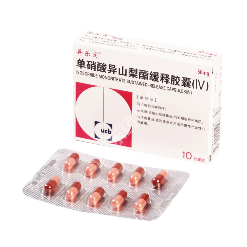 单硝酸异山梨酯缓释胶囊(长效异乐定)商品编码:23239 生产厂家:优时比(珠海) |