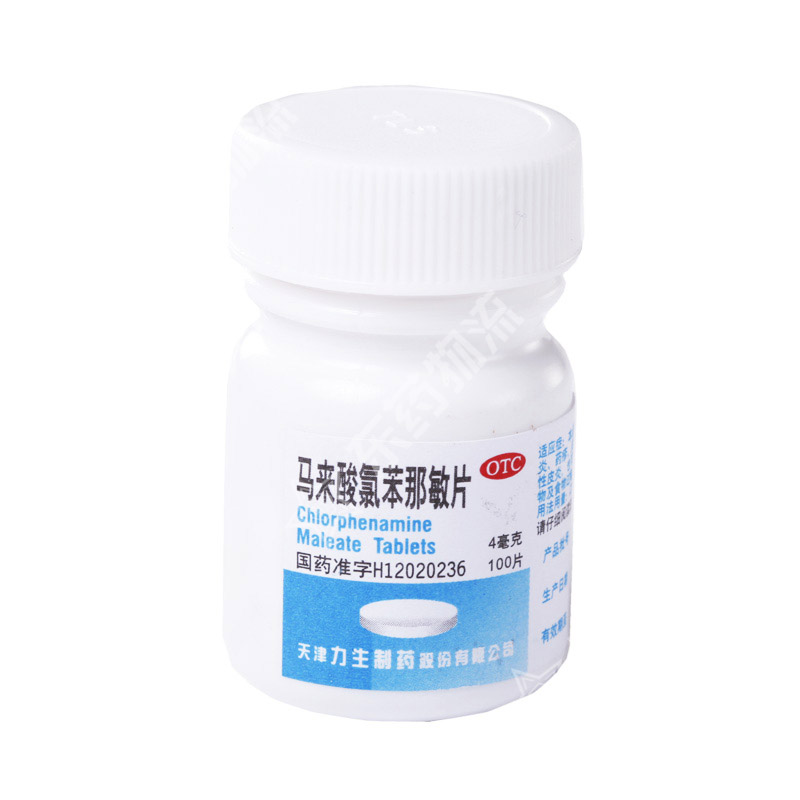 马来酸氯苯那敏片(扑尔敏片)商品编码:2893 生产厂家:天津力生 |