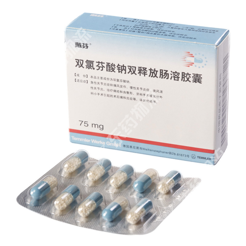 双氯芬酸钠双释放肠溶胶囊(戴芬)商品编码:77400 生产厂家:Temmler Ireland Ltd |