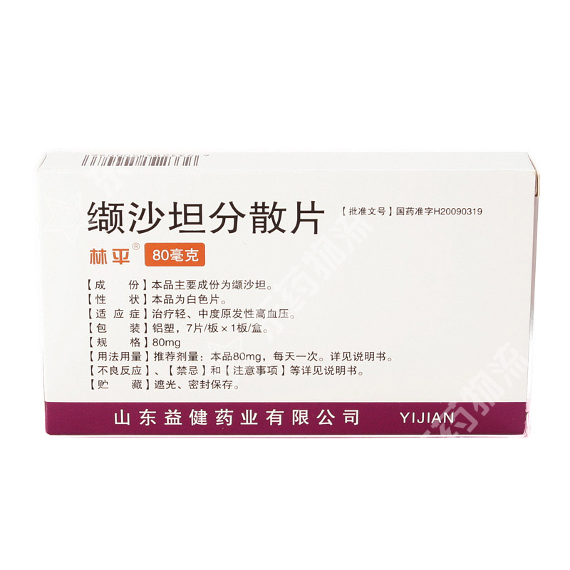 | 用法用量: | 推荐剂量:本品80mg,每天一次。剂量与种族、年龄、性别无关。可以在进餐时或空腹服用(见吸收)。建议每天在同一时间用药(如早晨)。用药2周内达确切降压效果,4周后达最大疗效。降压效果不满意时,每日剂量可增加至160mg,或加用利尿剂。肾功能不全(严重肾衰见禁忌)及非胆管源性、无淤胆的肝功能不全患者无需调整剂量。缬沙坦可以与其他抗高血压药物联合应用。 |