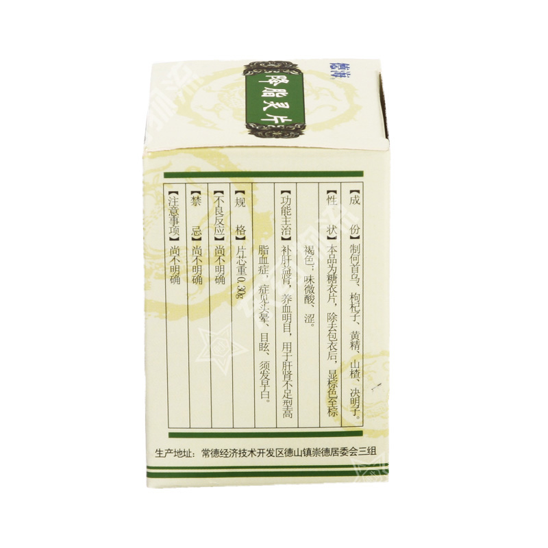 | 成份: | 制何首乌、枸杞子、黄精、山楂、决明子。 |