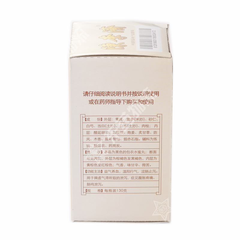 | 成份: | 外层:黄芪、党参(米炒)、砂仁、白芍、当归(土炒);白术(土炒)、肉桂;内层:醋延胡索、荔枝核、炮姜、炙甘草、防风、木香、盐补骨脂、煅赤石脂。辅料为炼蜜、肠溶衣。 |