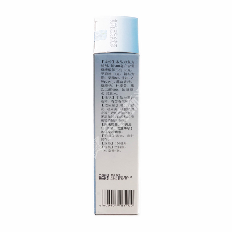 | 药物相互作用: | 1. 使用本品期间,如使用其他口腔含漱液,应至少间隔2小时。2. 如与其他药物同时使用可能会发生药物相互作用,详情请咨询医师或药师。 |