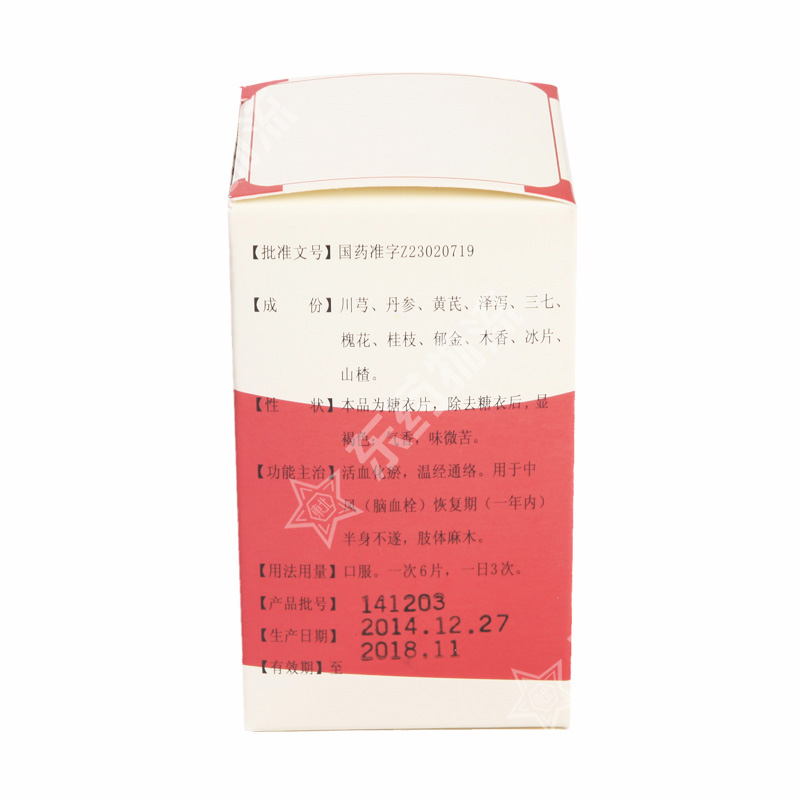 | 功能主治: | 本品活血化瘀,温经通络。用于中风(脑血栓)恢复期(一年内)半身不遂,肢体麻木。 |
