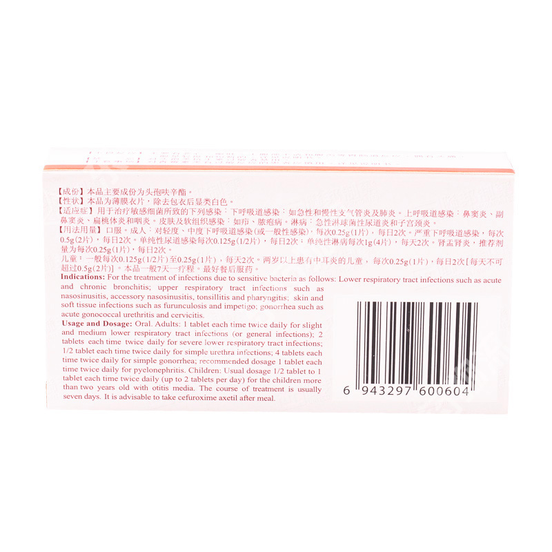 | 药理作用: | 本品为第二代头孢菌素类抗生素。口服经胃肠道吸收后,在酯酶作用下迅速水解为头孢呋辛而发挥抗菌作用。对革兰阳性球菌的活性与第一代头孢菌素相似或略差,但对葡萄球菌和革兰阴性杆菌产生的b内酰胺酶显得相当稳定。除耐甲氧西林葡萄球菌、肠球菌属和李斯特菌属外,其他阳性球菌(包括厌氧球菌)对本品均敏感。本品对金黄色葡萄球菌的抗菌活性较头孢唑啉差,1~2mg/L的本品可分别抑制对青霉素敏感和耐药的全部金黄色葡萄球菌。对流感嗜血杆菌有较强抗菌活性,大肠埃希菌、奇异变形杆菌等对本品敏感;吲哚阳性变形杆菌、枸橼酸菌属和不动杆菌属对本品的敏感性差,沙雷菌属多数耐药,铜绿假单胞菌、弯曲杆菌属和脆弱拟杆菌对本品耐药。本品的作用机制是抑制细菌细胞壁的合成。 |