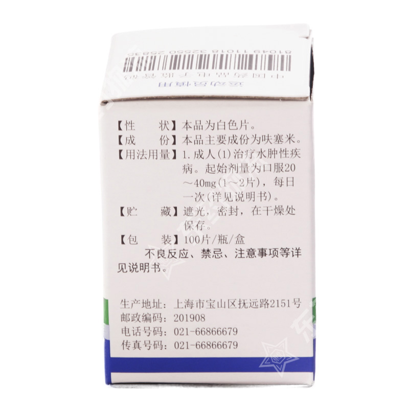 | 用法用量: | 口服给药:成人 1. 治疗水肿性疾病:起始剂量为20~40mg,每日1次,必要时6~8小时后追加20~40mg,直至出现满意利尿效果。最大剂量虽可达每日600mg,但一般应控制在100mg以内,分2~3次服用。以防过度利尿和不良反应发生。部分患者剂量可减少至20~40mg,隔日1次,或每周中连续服药2~4日,每日20~40mg。 2. 治疗高血压:起始每日40~80mg,分2次服用,并酌情调整剂量。 3. 治疗高钙血症:每日80~120mg,分1~3次服。 儿童 治疗水肿性疾病,起始按体重2mg/kg,必 |