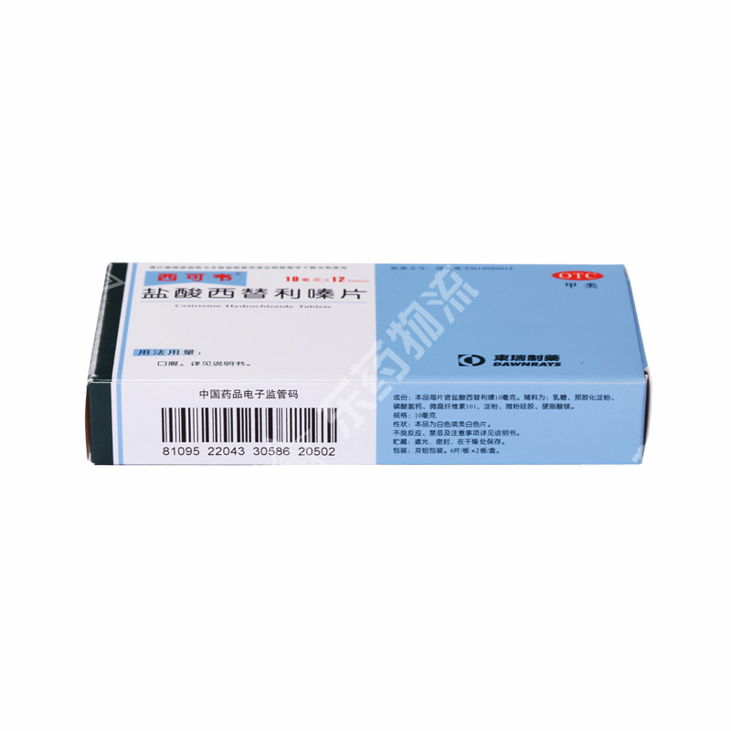 | 成份: | 盐酸西替利嗪。其化学名称为:()-2-[2-[4-[(4-氯苯基)苯甲基]-1-哌嗪基]乙氧基]乙酸二盐酸盐 |