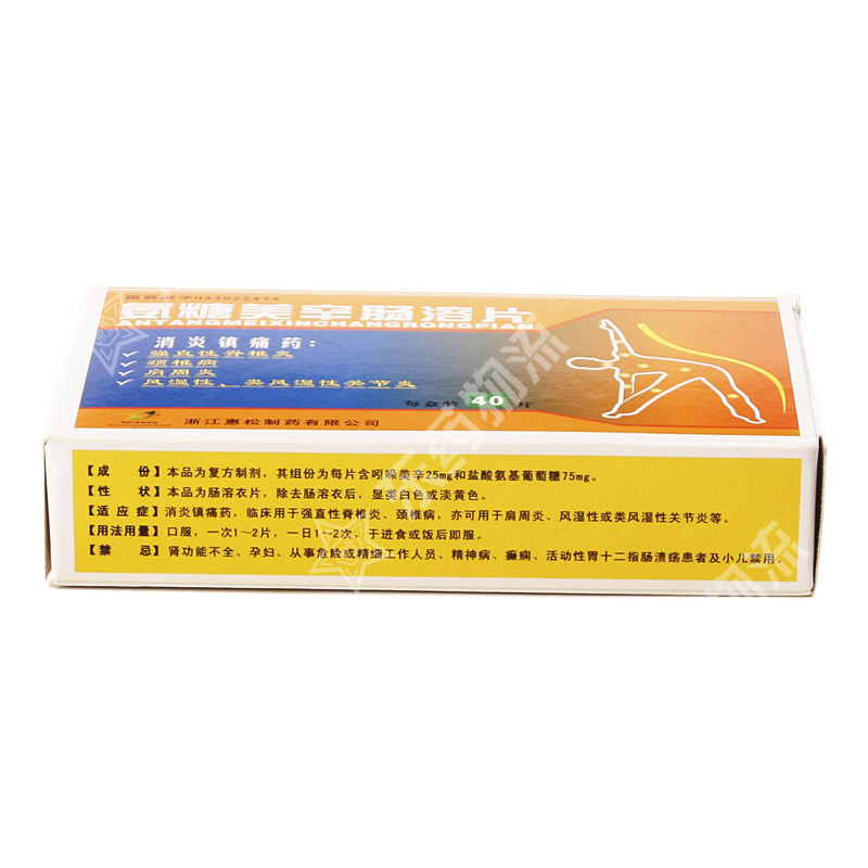 | 注意事项: | 1. 本品为肠溶衣片,应整片吞服,以防药物在胃中被破坏。2. 连续使用3天后炎症仍未消除,应向医师咨询。 3. 请将本品放在儿童不能触及的地方,儿童须在成人监护下使用。 4. 当药品形状发生改变时禁止使用。 |