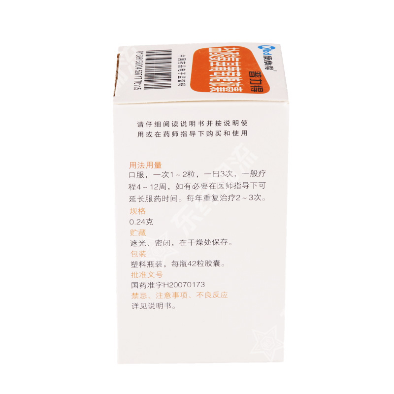 | 用法用量: | 口服,一次1粒,一日2次,吃饭时或饭后服用。6周为一个疗程或根据需要延长。每年重复治疗2-3次。 |
