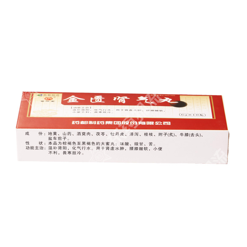 | 成份: | 地黄、山药、山茱萸(酒炙)、茯苓、牡丹皮、泽泻、桂枝、附子(制)、牛膝(去头)、车前子(盐炙)。辅料为蜂蜜。 |
