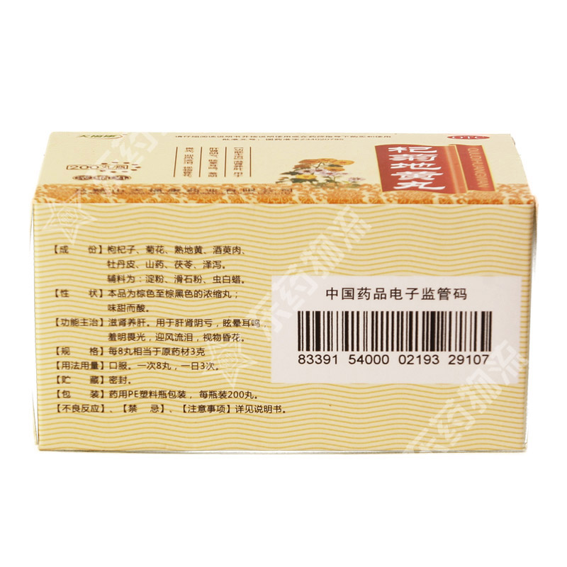 | 成份: | 枸杞子、菊花、熟地黄、酒萸肉、牡丹皮、山药、茯苓、泽泻。辅料为:淀粉、滑石粉、虫白蜡。 |