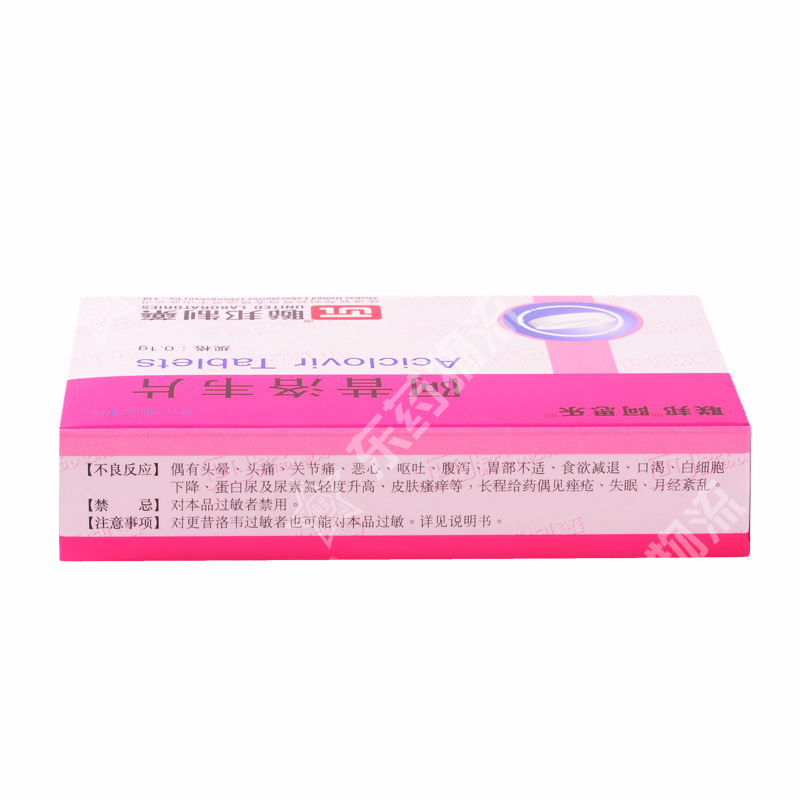 注意事项: 1.对更昔洛韦过敏者也可能对本品过敏。2.脱水或已有肝、肾功能不全者需慎用。3.严重免疫功能缺陷者长期或多次应用本品治疗后可能引起单纯疱疹病毒和带状疱疹病毒对本品耐药。如单纯疱疹患者应用阿昔洛韦后皮损不见改善者应测试单纯疱疹病毒对本品的敏感性。4.随访检查:由于生殖器疱疹患者大多易患子宫颈癌,因此患者至少应一年检查一次,以早期发现。5.一旦疱疹症状与体征出现,应尽早给药。6.进食对血药浓度影响不明显。但在给药期间应给予患者充足的水,防止本品在肾小管内沉淀。7.生殖器复发性疱疹感染以间歇短程疗法给药有效。由于动物实验曾发现本品对生育的影响及致突变,因此口服剂量与疗程不应超过推荐标准。生殖器复发性疱疹的长程疗法也不应超过6个月。8.一次血液透析可使血药浓度减低6%,因此血液透析后应补给一次剂量。9. 本品对单纯疱疹病毒的潜伏感染和复发无明显效果,不能根除病毒。