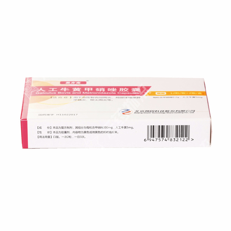 | 通用名称: | 人工牛黄甲硝唑胶囊 |