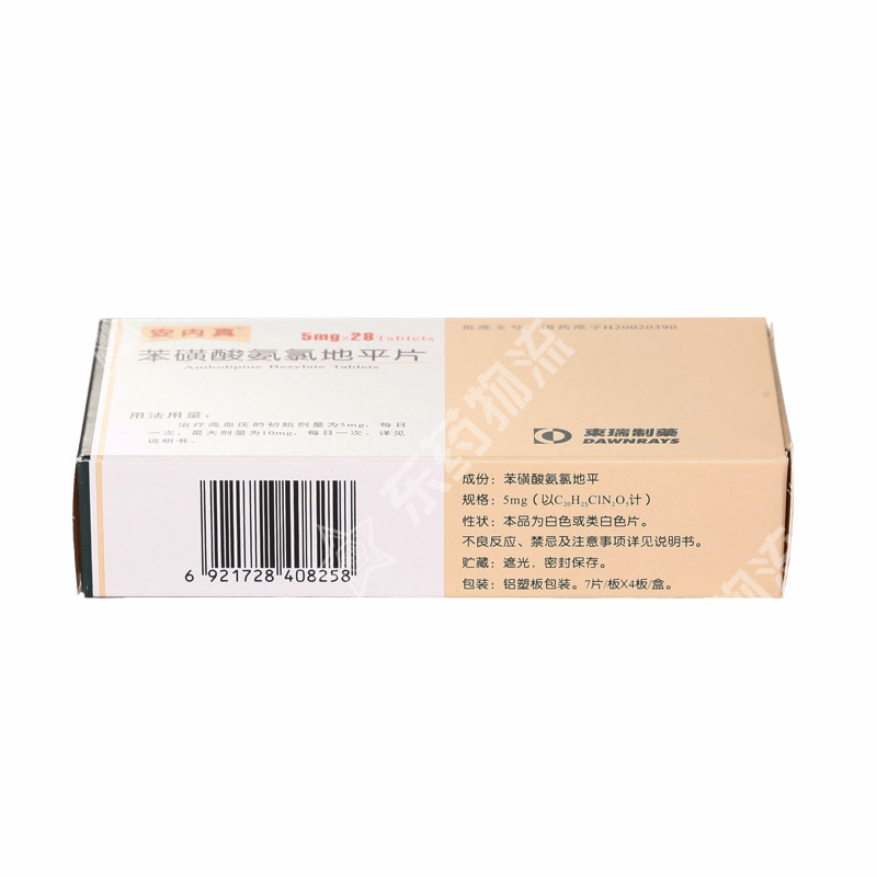 | 用法用量: | 1.治疗高血压:初始剂量为5mg,每日一次,最大剂量为10mg,每日一次。虚弱或老年患者、伴有肝功能不全患者初始剂量为2.5mg(苯磺酸氨氯地平片:半片)每日一次,此剂量也可为原使用其它抗高血压药物治疗需加用本品治疗的剂量。应根据患者个体反应调整剂量,一般的剂量调整应在7-14天后开始进行。如临床需要,在对患者进行严密监测的情况下,可于较短时间内开始剂量调整。2.治疗心绞痛:初始剂量为5mg-10mg,每日一次,老年及肝功能不全的患者建议使用较低剂量治疗,大多数人的有效剂量为10mg/日。 |