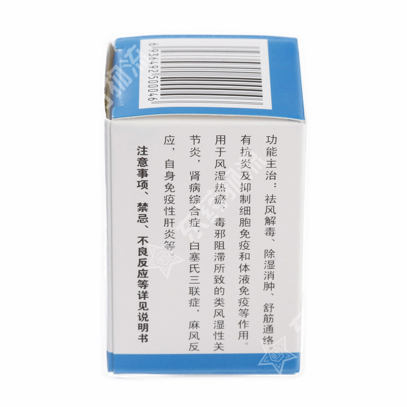 | 功能主治: | 祛风解毒,除湿消肿,舒筋通络,有抗炎及抑制细胞免疫和体液免疫等作用,本品主要用于风湿热瘀,毒邪阻滞所致的类风湿性关节炎,肾病综合症,白塞氏三联症,麻风反应,自身免疫性肝炎等。 |