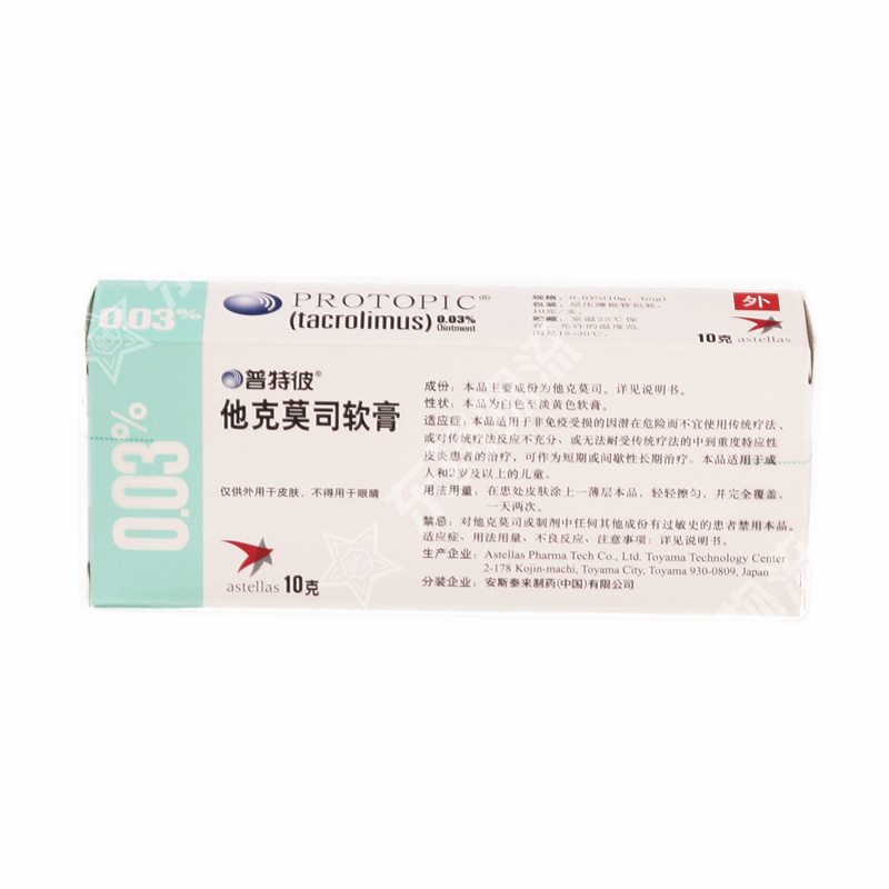 注意事项: 1. 患者应在医生的指导下使用本品。本品仅供外用。和任何外用药一样,患者或护工在用药后 应洗手,如果手部不是治疗区的话。 2. 在使用本品期间,患者应减少或避免自然阳光或人工太阳光(晒床或UVA/UVB治疗)。 3. 患者不应将本品用于处方以外的疾病。 4. 患者应向医生报告不良反应的症状。 5. 沐浴或淋浴后应等皮肤完全干燥后再应用本品。 外用本品可能会引起局部症状,如皮肤烧灼感(灼热感 、刺痛、疼痛)或瘙痒。局部症状最常见于使用本品的最初几天,通常会随着特应性皮炎受累皮肤好转而消失。应用0.1%浓度的本品治疗时,90%的皮肤烧灼感持续时间介于2分钟至3小时(中位时间为15分钟)之间,90%的瘙痒症状持续时间介于3分钟至10小时(中位时间为20分钟)之间。不推荐使用本品治疗Netherton综合征患者,因为可能会增加他克莫司的全身性吸收。本品对弥漫性红皮病患者治疗的安全性尚未建立。
