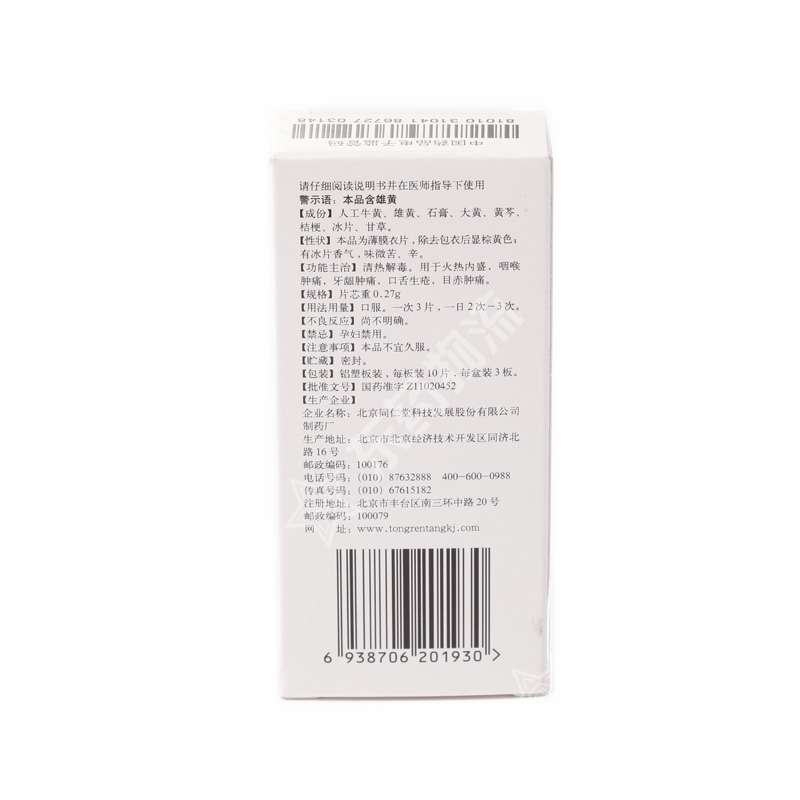 | 成份: | 本品主要成分人工牛黄、雄黄、石膏、大黄、黄芩、桔梗、冰片、甘草。 |