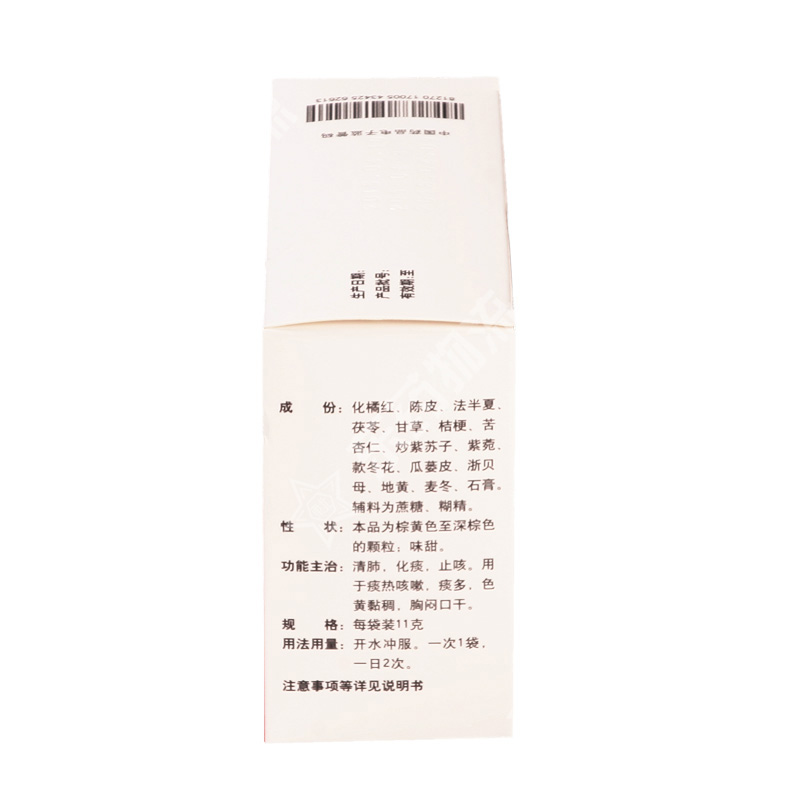 | 注意事项: | 1. 忌烟、酒及辛辣食物。2. 有支气管扩张、肺脓疡、肺结核、肺心病、糖尿病的患者,应在医师指导下服用。3. 服用三天,症状无改善,应停止服用,并去医院就诊。4. 按照用法用量服用,小儿、孕妇、哺乳期妇女、年老体虚者应在医师指导下服用。5. 长期服用应向医师咨询。6. 对本品过敏者禁用,过敏体质者慎用。7. 本品性状发生改变时禁止使用。8. 儿童必须在成人监护下使用。9. 请将本品放在儿童不能接触的地方。10. 如正在使用其他药品,使用本品前请咨询医师或药师。 |