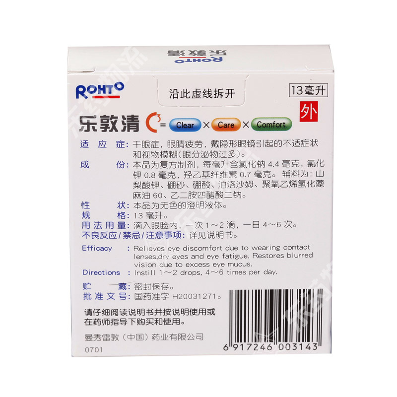 通用名称:复方氯化钠滴眼液(Ⅱ)(乐敦清)