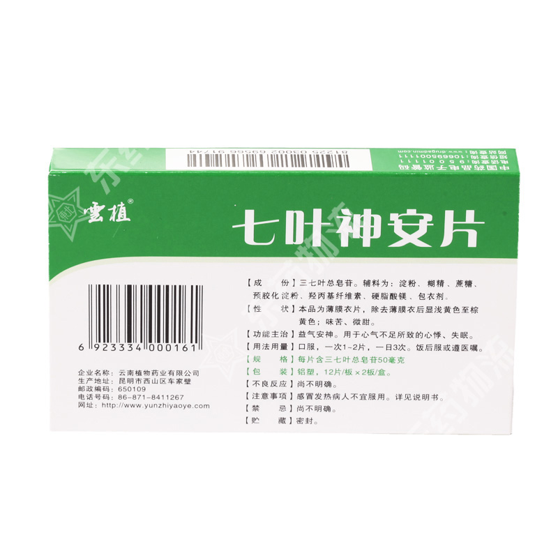 七叶神安片(薄膜衣) 说明书