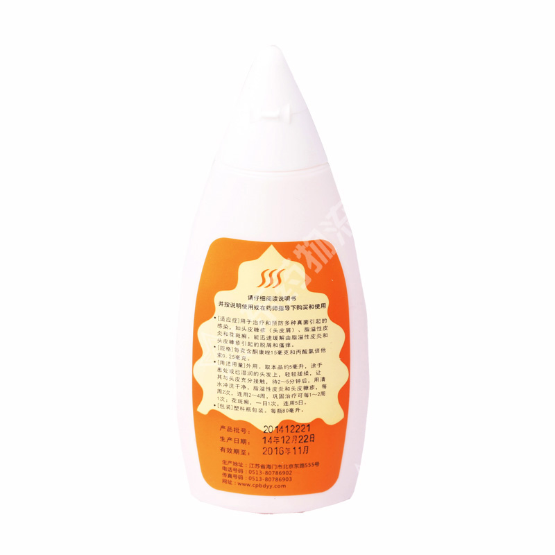 | 用法用量: | 外用。取本品约5毫升,涂于患处或已湿润的头发上,轻轻搓揉,让其与头皮充分接触,待2~5分钟后,用清水冲洗干净。脂溢性皮炎和头皮糠疹,每周2次,连用2—4周,巩固治疗可每1~2周1次:花斑癣,一日1次,连用5日。 |