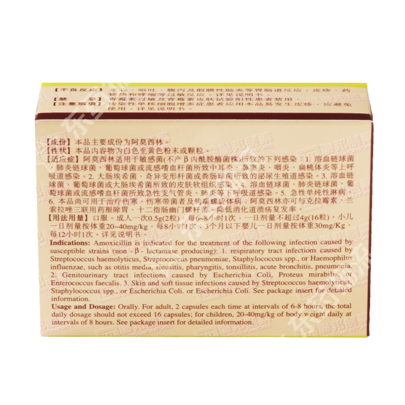 | 成份: | 本品主要成份为阿莫西林。 |