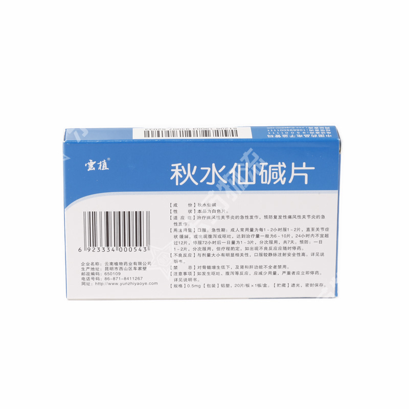 | 用法用量: | 1.口服急性期:成人常用量为每1~2小时服0.5~1mg,直至关节症状缓解,或出现腹泻或呕吐,达到治疗量一般为3~5mg,24小时内不宜超过6mg,停服72小时后一日量为0.5~1.5mg,分次服用,共7天。2.预防:一日0.5~1.0mg,分次服用,但疗程酌定,如出现不良反应应随时停药。 |