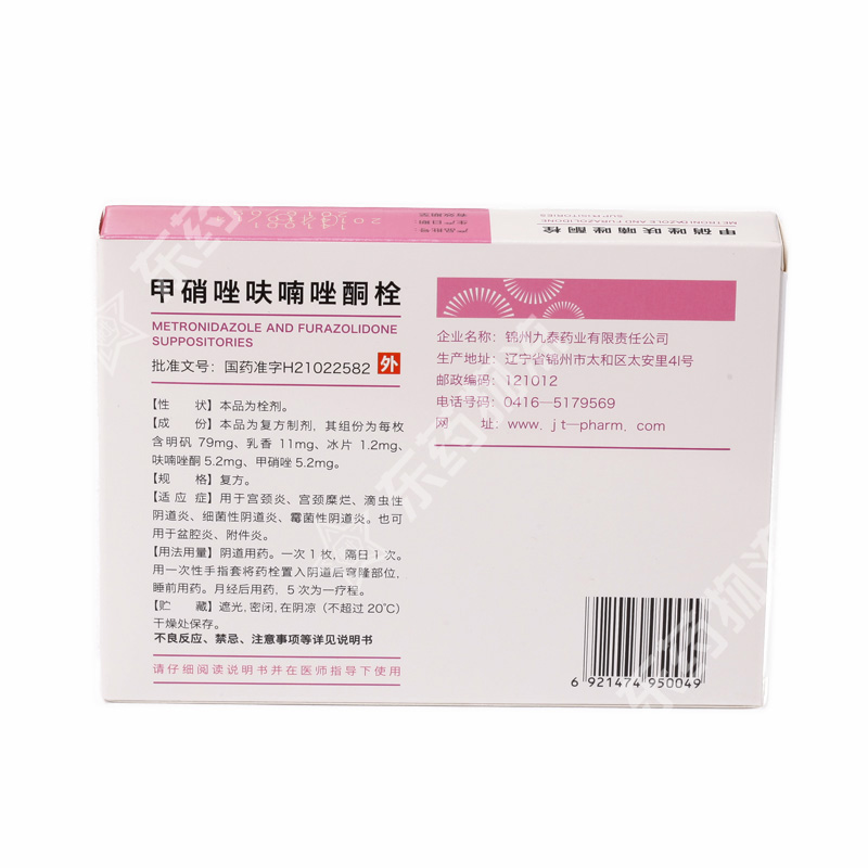 | 通用名称: | 甲硝唑呋喃唑酮栓 |