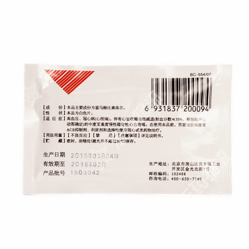 | 通用名称: | 富马酸比索洛尔片(博苏) |