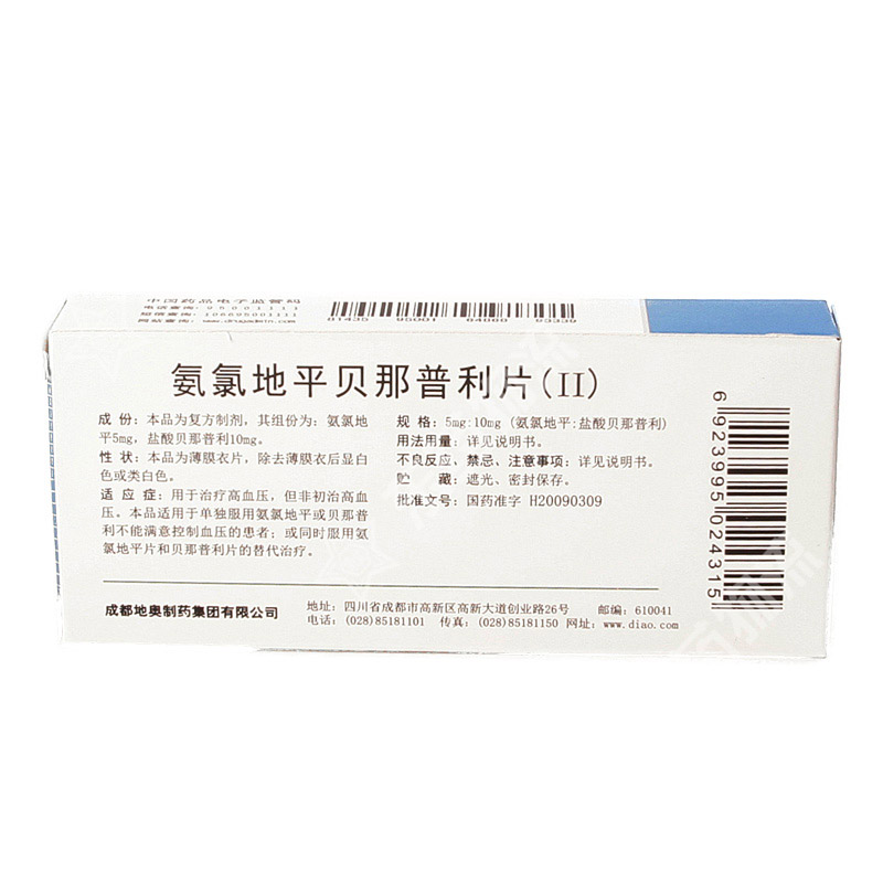 | 成份: | 本品为复方制剂,其组成份为:氨氯地平5mg,盐酸贝那普利10mg。 |
