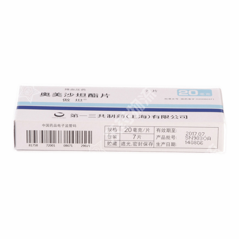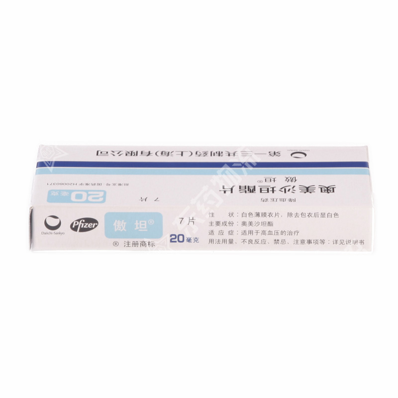 | 不良反应: | 在多达3275例患者的对照临床试验中评价了奥美沙坦酯的安全性,其中约900例患者至少接受了6个月的治疗,525例以上患者至少接受了1年的治疗。结果显示,奥美沙坦酯有很好的耐受性,不良事件发生率与安慰剂组相似。不良事件通常轻微且短暂,并与剂量、性别、年龄及种族差异无关。在安慰剂对照临床试验中,接受奥美沙坦酯治疗的患者中唯一的1项发生率大于1%且高于安慰剂治疗组的不良事件是头晕(3%对1%)。发生率与安慰剂组相似,大于1%的不良事件有 :背痛、支气管炎、肌酸磷酸激酶升高、腹泻、头痛、血尿、高血糖症、高甘油三酯血症、流感样症状、咽炎、鼻炎和鼻窦炎。咳嗽的发生率在安慰剂组(0.7%)和奥美沙坦酯组(0.9%)患者中相似。发生率与安慰剂组相似,低于1%大于0.5%的不良事件有 :胸痛、乏力、疼痛、外周性水肿、眩晕、腹痛、消化不良、肠胃炎、恶心、心动过速、高胆固醇血症、高脂血症、高尿酸血症、关节疼痛、关节炎、肌肉疼痛、骨骼疼痛、皮疹和面部水肿等。上述不良事件是否与服用本品有关尚不明确。实验室检查结果 :在临床对照试验中,具有重要临床意义的实验室参数的变化与奥美沙坦酯极少具有相关性。血红蛋白和血细胞比容 :偶见血红蛋白和血细胞比容略有下降(分别平均下降了大约0.3 g/dL和0.3体积百分比)。肝功能检查 :偶见肝脏酶上升和/或血胆红素上升,但会自行恢复正常。既往的市场经验 罕见有血管紧张素II受体拮抗剂引起横纹肌溶解症的报道。 |