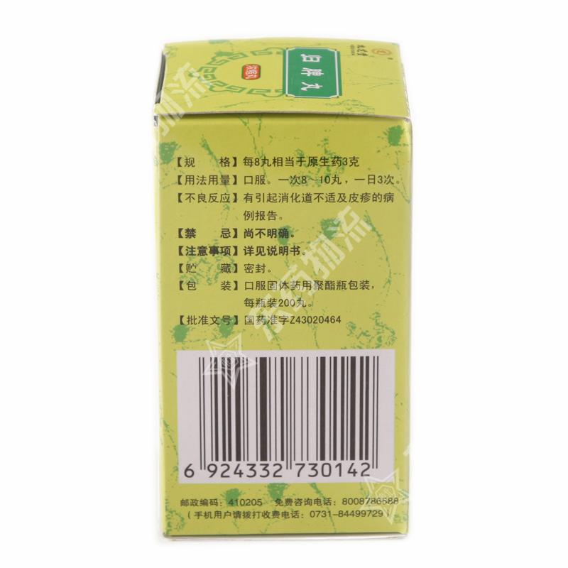 | 注意事项: | 1. 忌油腻食物。2. 外感或实热内盛者不宜服用。3. 本品宜饭前服用。4. 按照用法用量服用,小儿、孕妇、高血压、糖尿病患者应在医师指导下服用。5. 服药二周症状未明显改善,或症状加重者,应立即停药并到医院应诊。6. 对本品过敏者禁用,过敏体质者慎用。7. 本品性状发生改变时禁止使用。8. 儿童必须在成人监护下使用。9. 请将本品放在儿童不能接触的地方。10. 如正在使用其他药品,使用本品前请咨询医师或药师。 |