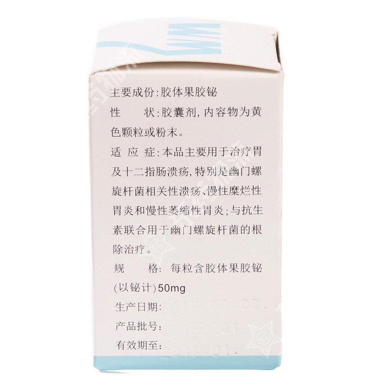 | 功能主治: | 1. 胃及十二指肠溃疡,慢性胃炎。2. 与抗生素联合,用于胃幽门螺旋杆菌的根除治疗。 |
