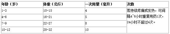 口服。12岁以下小儿用量见下表: