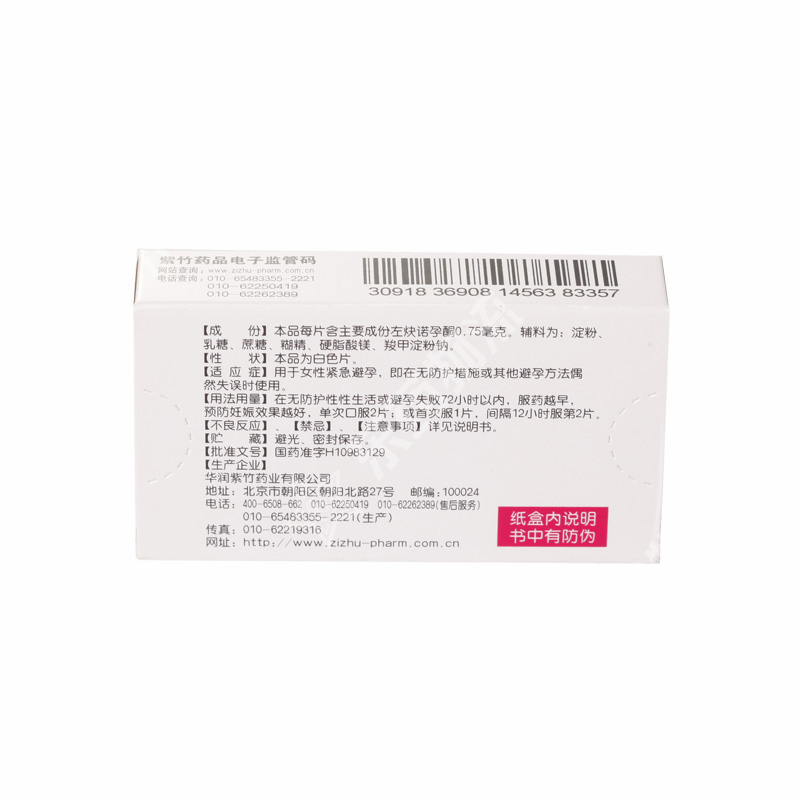 | 功能主治: | 用于女性紧急避孕,即在无防护措施或其他避孕方法偶然失误时使用 |