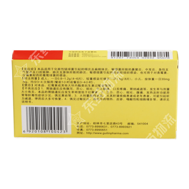 | 功能主治: | 本品适用于化脓性链球菌引起的咽炎及扁桃体炎,敏感菌所致的鼻窦炎、中耳炎、急性支气管炎及口腔脓肿,肺炎支原体所致的肺炎,敏感细菌引起的皮肤软组织感染,也可用于对青霉素、红霉素耐药的葡萄球菌的感染。 |