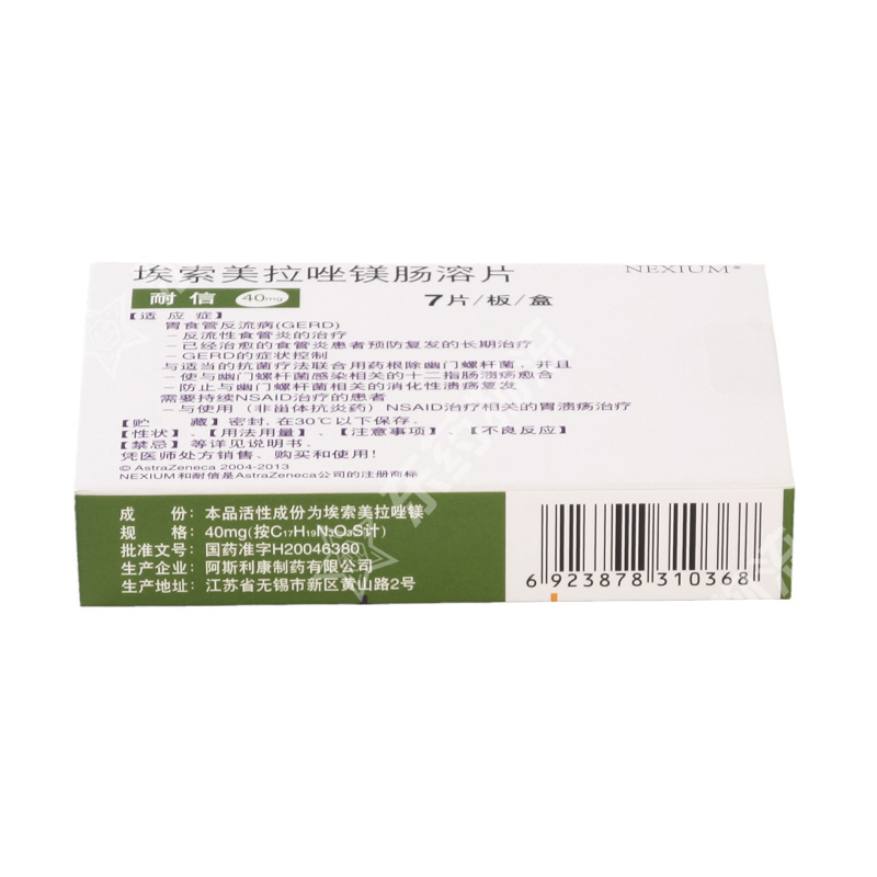 | 通用名称: | 埃索美拉唑镁肠溶片(耐信) |