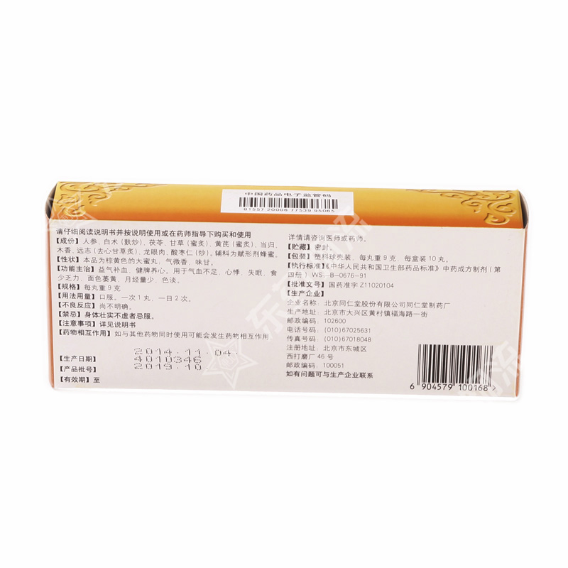 | 成份: | 人参、白术(麸炒)、茯苓、甘草(蜜炙)、黄芪(蜜炙)、当归、木香、远志(去心甘草炙)、龙眼肉、酸枣仁(炒)。辅料为赋形剂蜂蜜。 |