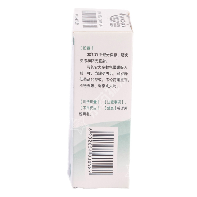 | 贮藏: | 30℃(86�F)下避光保存,避免受冻和阳光直射。同其它大多数气雾罐吸入剂一样,当罐受冻后,可能降低药品的疗效。不论空否,药罐不得弄破、刺穿或火烤。 |