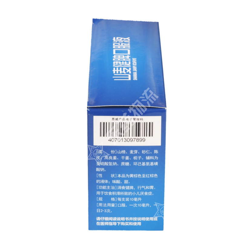 | 注意事项: | 1. 忌食生冷油腻及不易消化食品。2. 婴幼儿及糖尿病患儿应在医师指导下服用。3. 感冒时不宜服用。4. 长期厌食,体弱消瘦者,应去医院就诊。5. 服药7天症状无缓解,应去医院就诊。6. 对本品过敏者禁用,过敏体质者慎用。7. 本品性状发生改变时禁止使用。8. 儿童必须在成人监护下使用。9. 请将本品放在儿童不能接触的地方。10.如正在使用其他药品,使用本品前请咨询医师或药师。 |