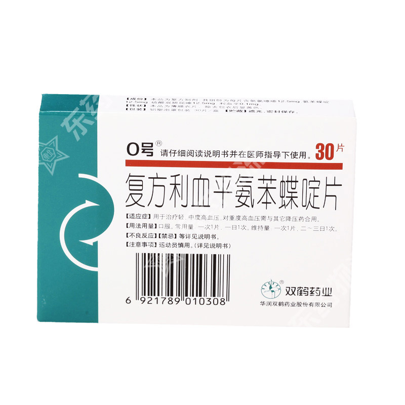 | 成份: | 本品为复方制剂,其组份为每片含氢氯嘻嗪125mg,氨苯蠕啶12.5mg,硫酸双肼屈嗪12.5mg,利血平0.1mg。 |