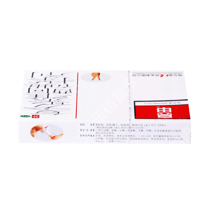 | 用法用量: | 外用。洗净患处,将本品涂搽患处,一日1~2次。用于癣病疗程为5~14天。对甲癣,先用温水软化患处,修锉掉病变部位,再涂搽本品,坚持使用至新甲长出,一般需2个月以上。 |