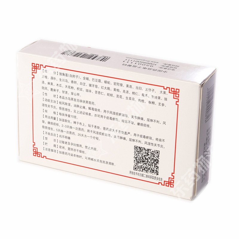 注意事项: 如膏药污染衣物时,可用碱水浸泡洗涤清除。