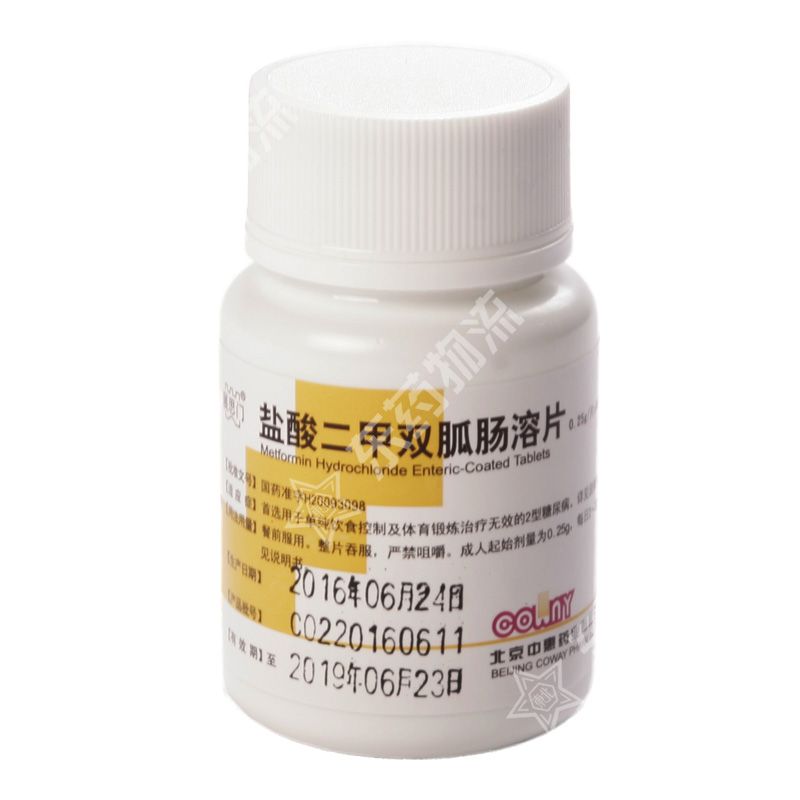 | 注意事项: | 1、本品为肠溶制剂,应整片吞服,不得嚼碎或掰开服用。2、口服本品期间,应定期检查肾功能,以减少乳酸中毒的发生,尤其是老年患者更应定期检查肾功能。接受外科手术和碘剂X线摄影检查前,患者应暂时停止口服本品。 3、肝功能不良:某些乳酸性酸中毒患者合并有肝功能损害。因此有肝脏疾病者应避免使用本品。 4、应激状态:在发热、昏迷、感染和外科手术时,服用口服降糖药患者易发生血糖暂时控制不良,在此时必须暂时停用本品,改用胰岛素。待应激状态缓解后恢复使用。 5、对1型糖尿病患者,不宜单独使用本品,而应与胰岛素合用。 6、应定期进行血液学检查。本品治疗引起巨幼红细胞性贫血罕见。如发生应排除维生素B12缺乏。 7、既往服用盐酸二甲双胍片治疗,血糖控制良好的2型糖尿病患者出现实验室化验异常或临床异常(特别是乏力或难于表达的不适),应当迅速寻找酮症酸中毒或乳酸酸中毒的证据,测定包括血清电解质、酮体、血糖、血酸碱度、乳酸盐、丙酮酸盐和二甲双胍水平,存在任何类型的酸中毒都应立即停用,开始其他恰当的治疗方法。 8、单独接受盐酸二甲双胍片的患者正常情况下不会发生低血糖,但当进食过少,或大运动量后没有补充足够的热量,与其他降糖药联合使用(例如磺脲类药物和胰岛素),饮酒等情况下会出现低血糖,须注意。 9、老年、衰弱或营养不良的患者,以及肾上腺和垂体功能低下、酒精中毒的患者更易发生低血糖。老年患者和服用β-肾上腺阻滞剂的患者的低血糖很难辨认,须注意。 10、患者应当了解盐酸二甲双胍片治疗的潜在危险和益处,以及选择治疗的方式。也应知道同时控制饮食、规律运动的重要性,以及规律检测血糖、糖化血红蛋白、肾脏功能和血液学参数的重要性。 11、须向患者解释乳酸酸中毒的危险性、症状和容易发生乳酸酸中毒的情况。当出现不能解释的过度呼气、肌痛、乏力、嗜睡或其他非特意性症状时,应立即停药,及时看医生。在二甲双胍治疗的初期常出现胃肠道症状,一旦患者坚持某一剂量治疗后出现胃肠道症状,通常与药物本身无关,随后出现的胃肠道症状可能是由于乳酸酸中毒或其他严重的疾病造成的。 |