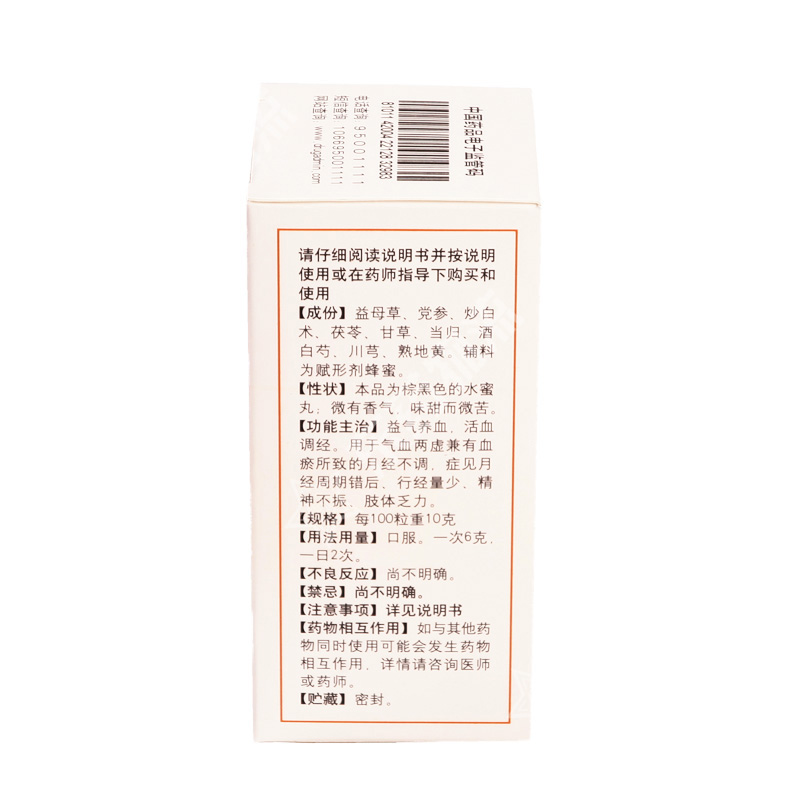 | 成份: | 益母草、党参、炒白术、茯苓、甘草、当归、酒白芍、川芎、熟地黄。辅料为赋形剂蜂蜜。 |