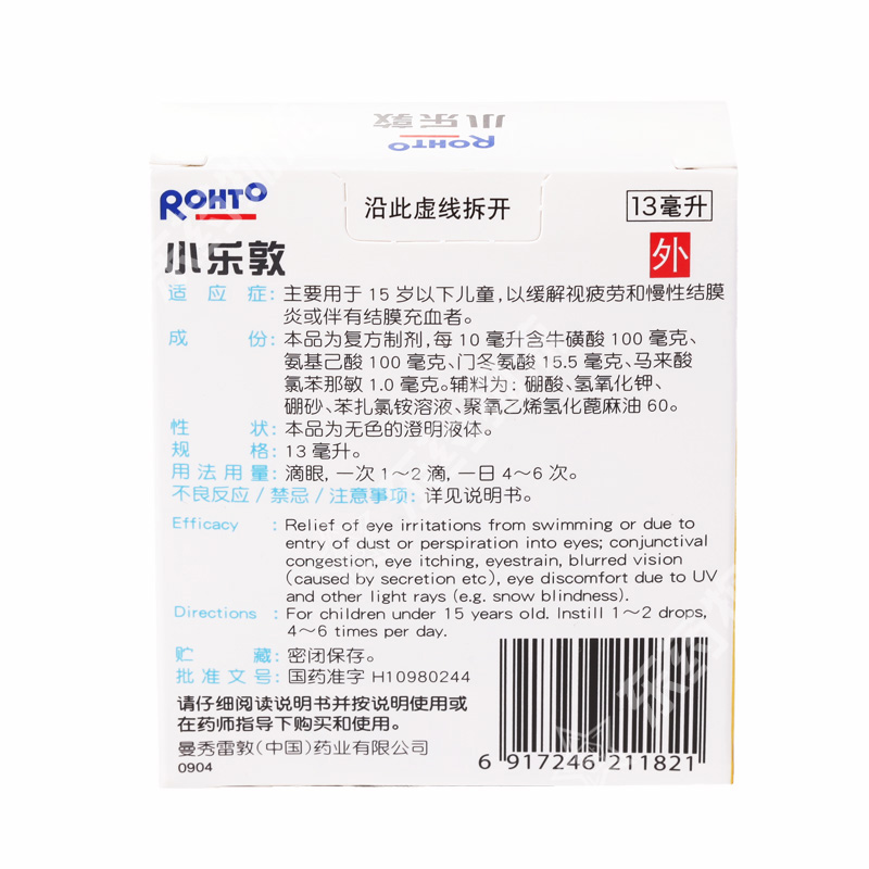 | 功能主治: | 主要用于15岁以下儿童,以缓解视疲劳和慢性结膜炎或伴有结膜充血者。 |