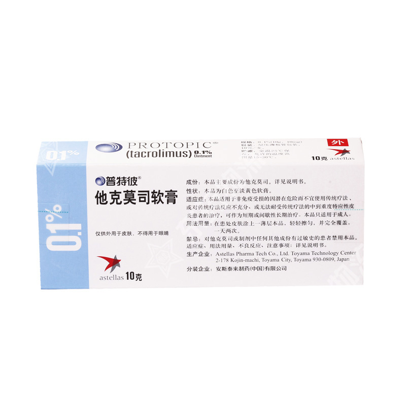 | 注意事项: | 1. 患者应在医生的指导下使用本品。本品仅供外用。和任何外用药一样,患者或护工在用药后 应洗手,如果手部不是治疗区的话。 2. 在使用本品期间,患者应减少或避免自然阳光或人工太阳光(晒床或UVA/UVB治疗)。 3. 患者不应将本品用于处方以外的疾病。 4. 患者应向医生报告不良反应的症状。 5. 沐浴或淋浴后应等皮肤完全干燥后再应用本品。 外用本品可能会引起局部症状,如皮肤烧灼感(灼热感 、刺痛、疼痛)或瘙痒。局部症状最常见于使用本品的最初几天,通常会随着特应性皮炎受累皮肤好转而消失。应用0.1%浓度的本品治疗时,90%的皮肤烧灼感持续时间介于2分钟至3小时(中位时间为15分钟)之间,90%的瘙痒症状持续时间介于3分钟至10小时(中位时间为20分钟)之间。不推荐使用本品治疗Netherton综合征患者,因为可能会增加他克莫司的全身性吸收。本品对弥漫性红皮病患者治疗的安全性尚未建立。 |