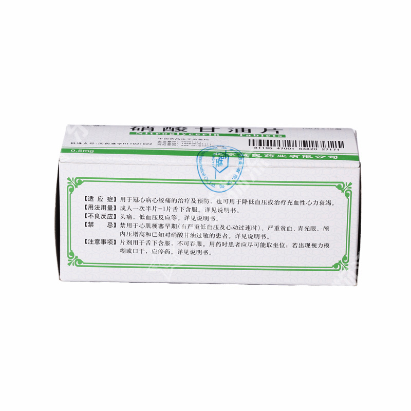 | 注意事项: | 1. 应使用能有效缓解急性心绞痛的最小剂量,过量可能导致耐受现象。片剂用于舌下含服,不可吞服。2. 小剂量可能发生严重低血压,尤其在直立位时。舌下含服用药时患者应尽可能取坐位,以免因头晕而摔倒。 3. 应慎用于血容量不足或收缩压低的患者。 4. 诱发低血压时可合并反常性心动过缓和心绞痛加重。 5. 可使肥厚梗阻型心肌病引起的心绞痛恶化。 6. 可发生对血管作用和抗心绞痛作用的耐受性。 7. 如果出现视力模糊或口干,应停药。剂量过大可引起剧烈头痛。 |